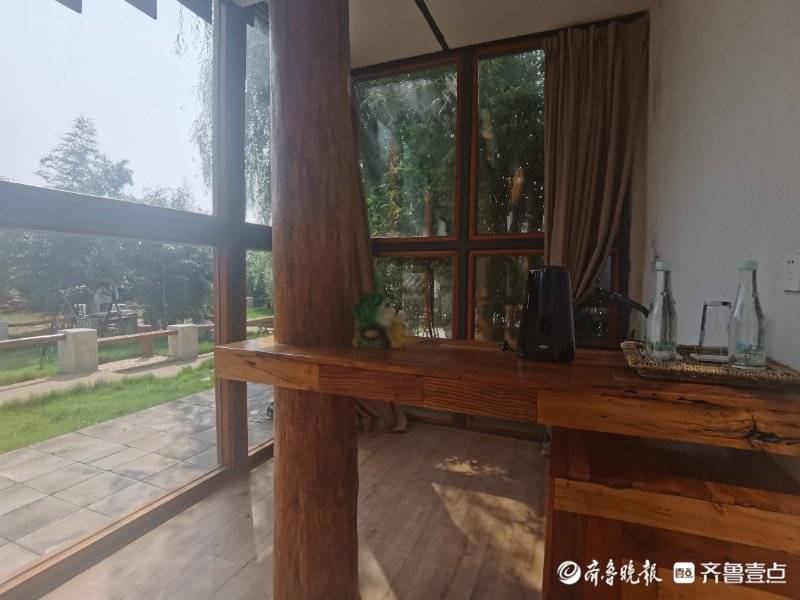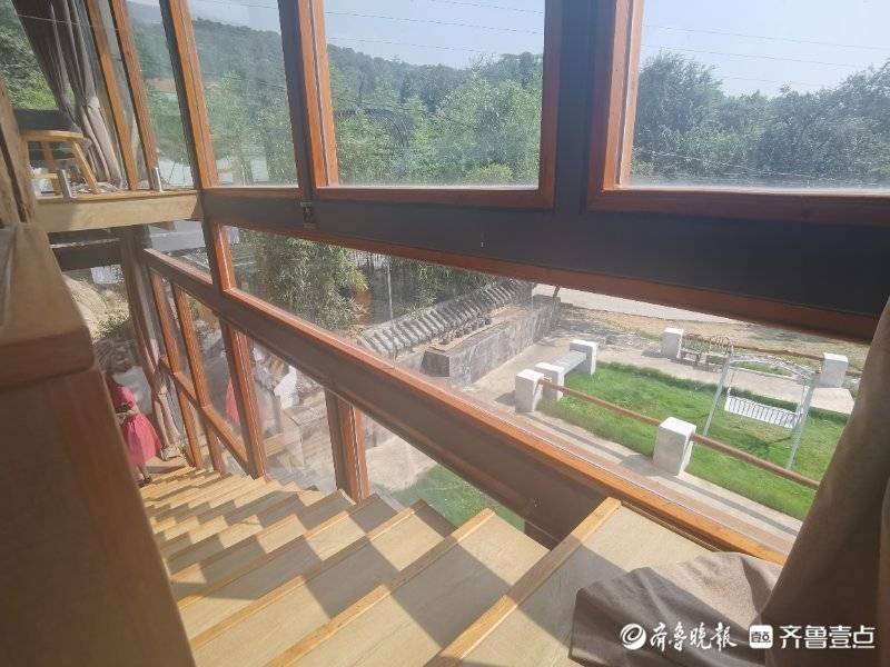 28日,记者在麓垚山居民宿经理尹纯政的引导讲解下,从院门向北步行,顺着小路依次参观了民宿、咖啡厅和小院,在院内左侧,是LOFT风格的二层玻璃房,圆年轻人一个“大大的落地窗”梦想。一楼小客厅装修风格采用简约工厂风,无数石头交错垒成的墙壁,天然裂缝的实木长条桌、老式竹椅,不经意间透露着自然的奢华。