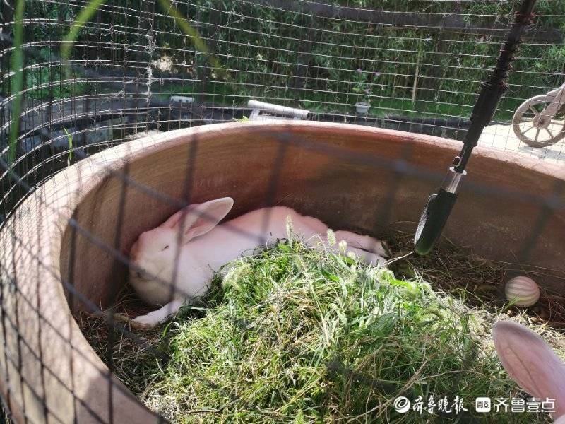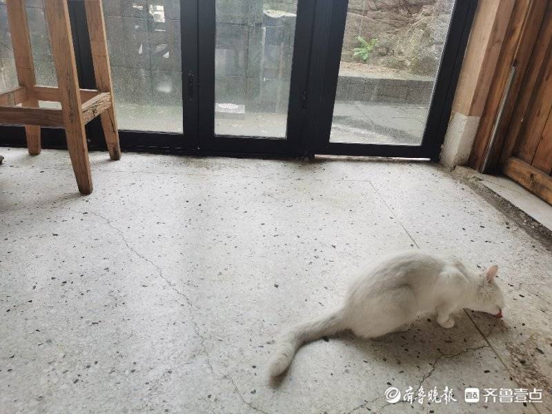 民宿院子里有石榴树、柿子树,咖啡厅楼顶的草坪上还有棵梨树,在这里举行求婚仪式,有“不离不弃”的美好寓意。除了各种花草绿植,庭院里还有许多小动物,锦鲤与乌龟,兔子与白猫,深受小朋友们的喜爱。一位六岁的小姑娘跟记者说,“你们要去看猫猫吗?”