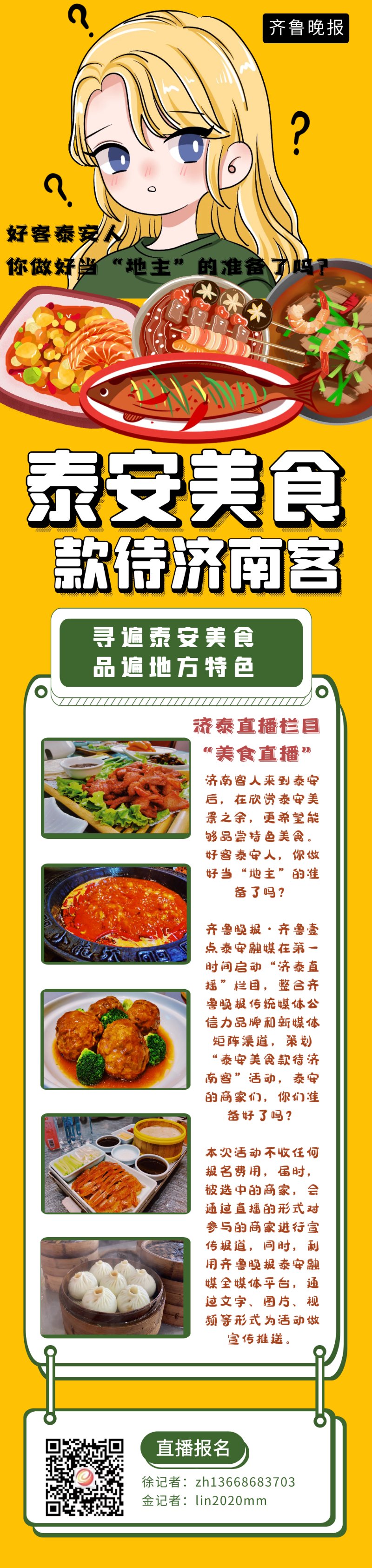 齐鲁晚报·齐鲁壹点泰安融媒,将联合两地有关部门与商业协会,在第一时间启动“济泰直播”栏目,整合齐鲁晚报传统媒体公信力品牌和新媒体矩阵,策划“泰安美食款待济南客”活动,泰安的美食商家们,你们准备好了吗?