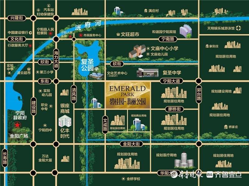 目标地块位于宁阳新城区新的富人区,紧邻复圣公园、文庙中心小学、复圣中学、银座亿丰商圈,地块周边各项配套逐步完善。