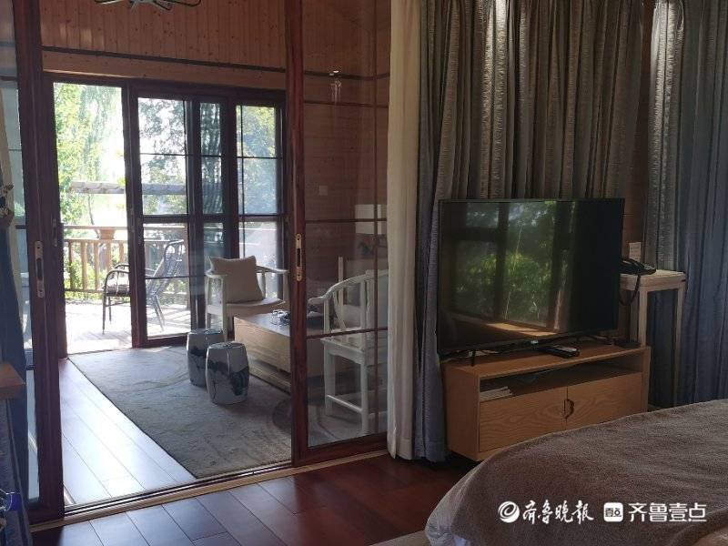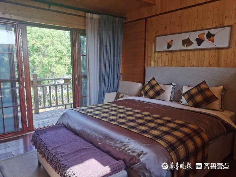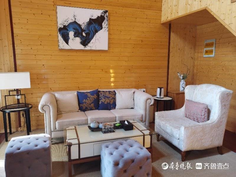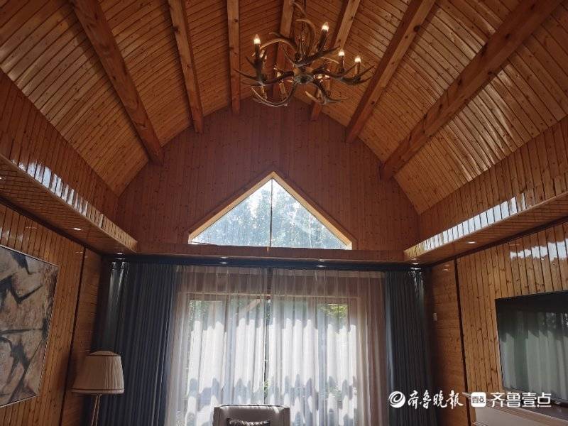 9月27日上午,齐鲁晚报·齐鲁壹点记者跟随酒店经理王燕,游览泰山天颐湖木屋度假酒店12座别致的木屋小别墅,分别名为望岳、揽湖、露萤、夕佳、榴心、榴意、南山、东篱、无宣、虚室、相顾、忘言。每一栋别墅都有它独特的风格,或简约大气,有着欧式别墅的风情浪漫;或琼楼玉宇,有着中式庭院的古朴诗意;或新颖小巧,有着现代家居的时尚雅致。房间整个采用木质结构。巧妙的外表配上明亮的装饰,心情也会随之明亮。