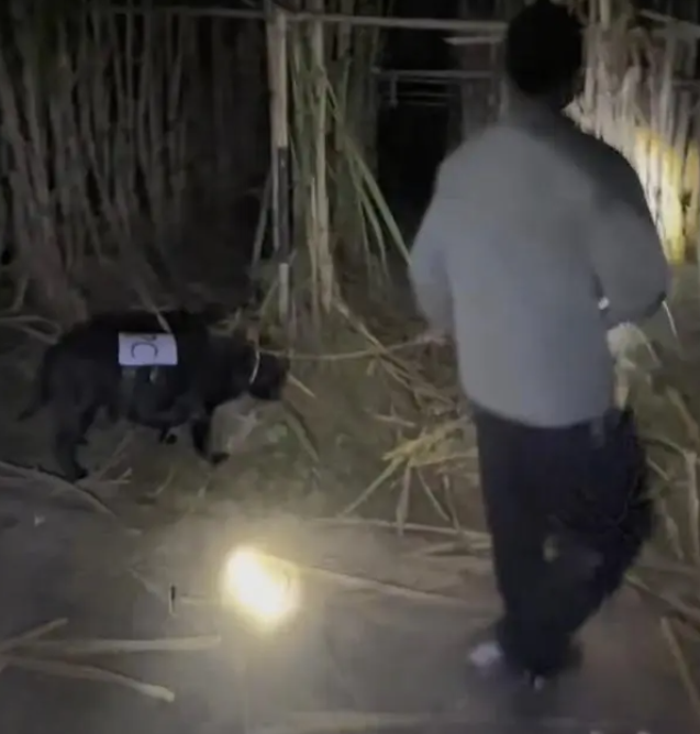 有不少游客晚上来“偷甘蔗”,童老板带着狗在甘蔗地里追,现场紧张又刺激。追到之后还会给游客提供甘蔗削皮服务。
