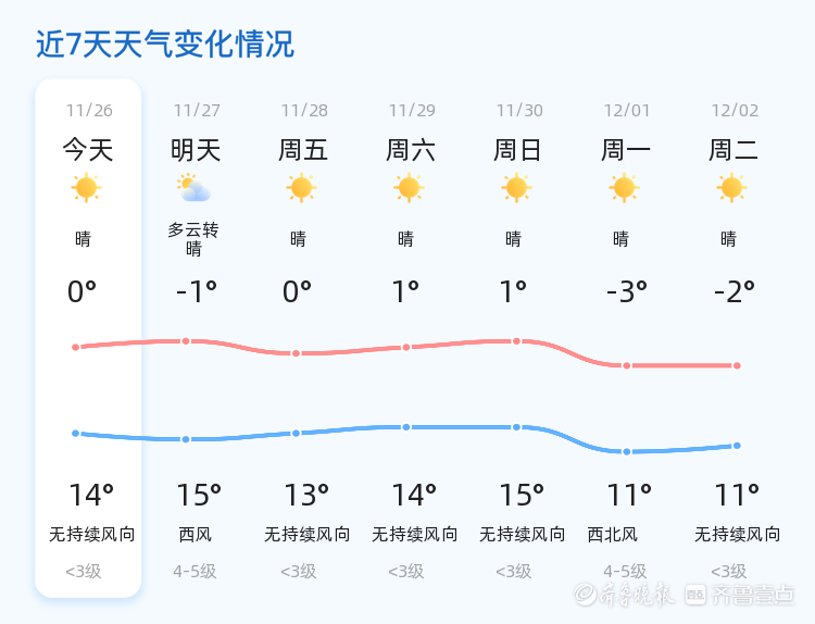 今天是11月26日,星期三,德州市迎来晴转多云的天气,气温在0℃至14℃之间,南风2级,空气湿度为67%,PM2.5指数为79,整体空气质量良好。各区天气情况基本一致,以晴转多云为主,市民出行需注意天气变化。