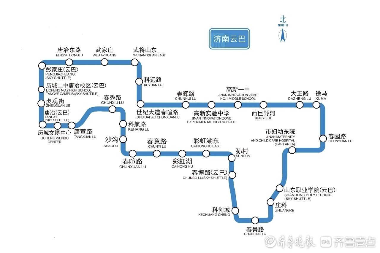 这条全长30.55公里的低运量轨道交通线,以高架形式串联高新区、历城区,32座车站构成闭环网络,覆盖唐冶、孙村、两河、庄科四大片区。