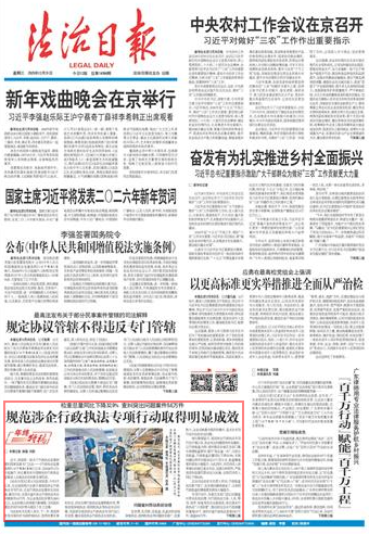 近日,我国第一部关于行政执法监督制度的国家层面专门立法——《行政执法监督条例》(以下简称《条例》)公布,自2026年2月1日起施行,标志着具有中国特色的行政执法监督进入全面法治化的新发展阶段。