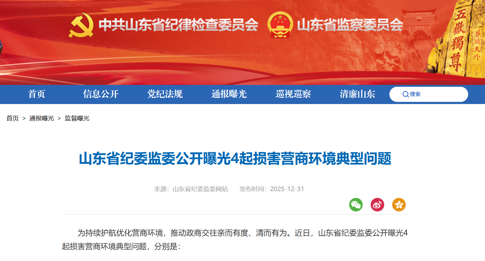 山东省纪委监委公开曝光4起损害营商环境典型问题