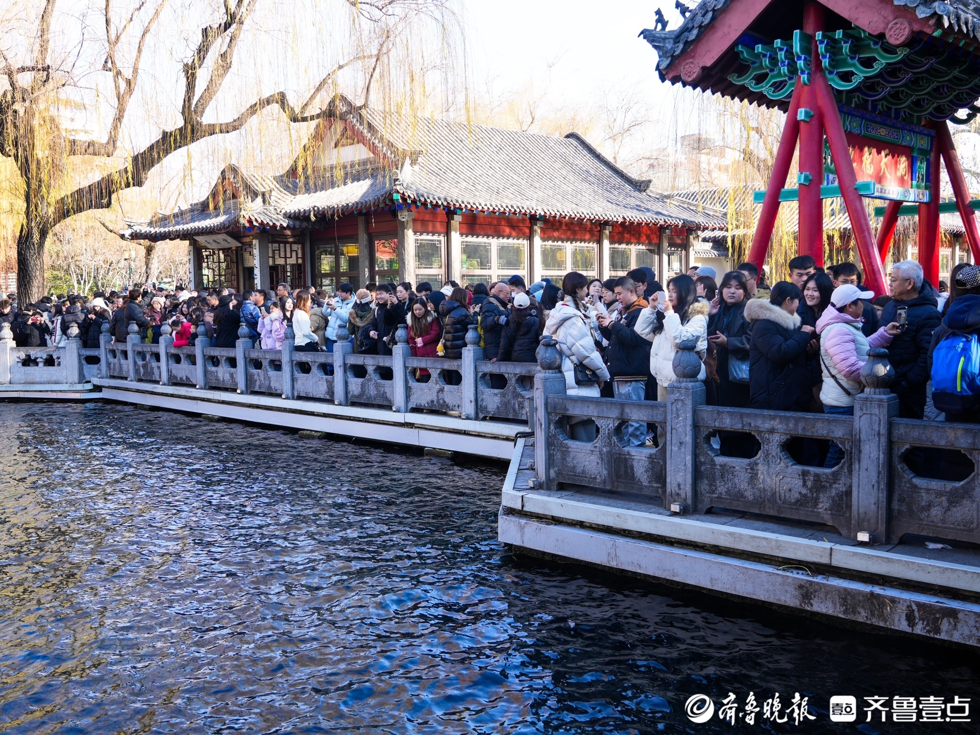 济南的冬天是响晴的,护城河的画舫悠然划过,在水面泛起阵阵涟漪,串联起黑虎泉的豪迈、解放阁的巍峨、趵突泉的灵动,五龙潭的清幽与大明湖的辽阔,一幅泉城冬日画卷徐徐展开。