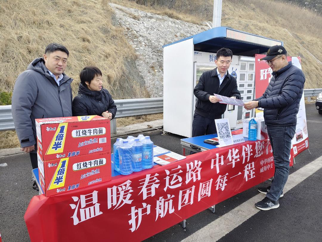 新春佳节将至,年味渐浓,阖家团圆的脚步日益临近。为深入践行“金融为民”初心使命,坚守“以客户为中心”服务理念,威海中支于2026年2月13日在双岛收费站启动2026年“中华护航,温暖春运”专项服务活动,以“快、简、暖”的服务理念为核心,凭借专业的保险保障与贴心的便民服务,为威海市民的平安返乡路保驾护航。