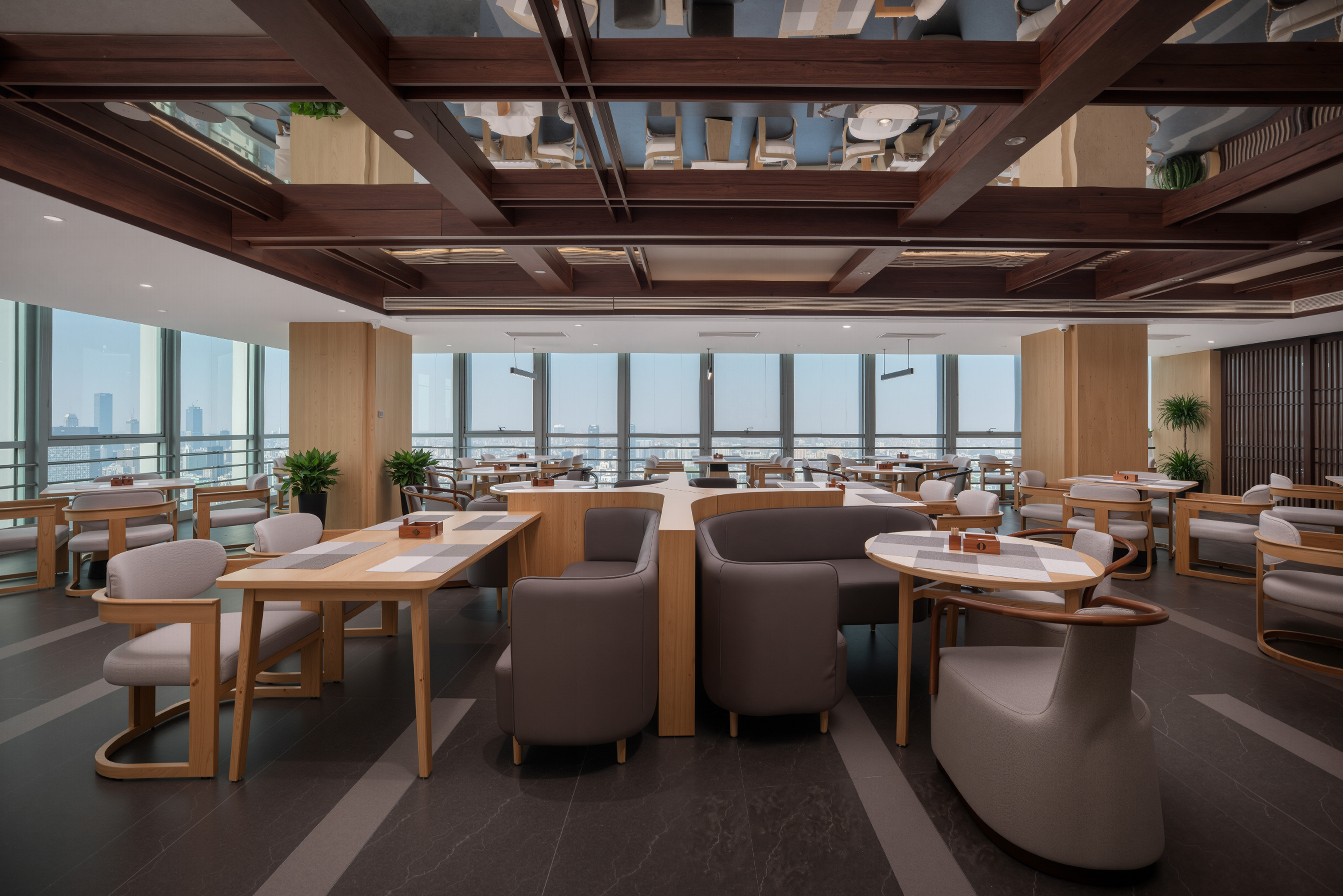“湖之浩渺”楼层主题,取意大明湖的烟雨空蒙与人文荟萃,色调清雅柔和,空间布局开阔而静谧,营造豁达包容之感,让人仿佛泛舟湖上,心随波平;