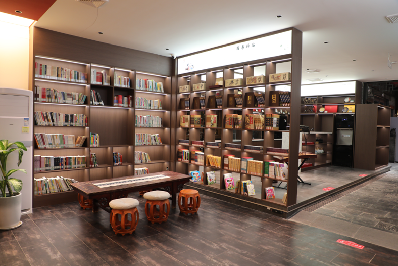 餐区的外围被图书角包裹着,陈列着《管子》《晏子春秋》《齐民要术》以及淄博本地的文史典籍。客人等菜的间隙,随手抽出一本翻上几页,三千年的文脉就这么不经意地流进了寻常的美食记忆中。