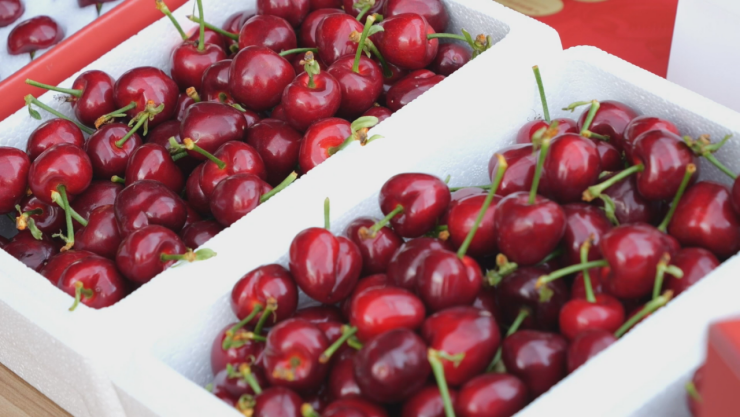 无独有偶,在景芝镇红樱谷生态种植农场的智能温室里,一串串深红饱满的大樱桃压弯枝头,果实晶莹透亮、清香四溢,果农们正忙着采摘这份珍贵的“春节鲜果”。这里的大樱桃比传统产区提前约三个月上市,抢占了全国早春鲜果市场的“第一篮”。通过电商、直播、快递等渠道,大樱桃远销北京、上海、江浙等地,特级果每斤售价300元,普通果每斤也在100元以上,经济效益十分可观。