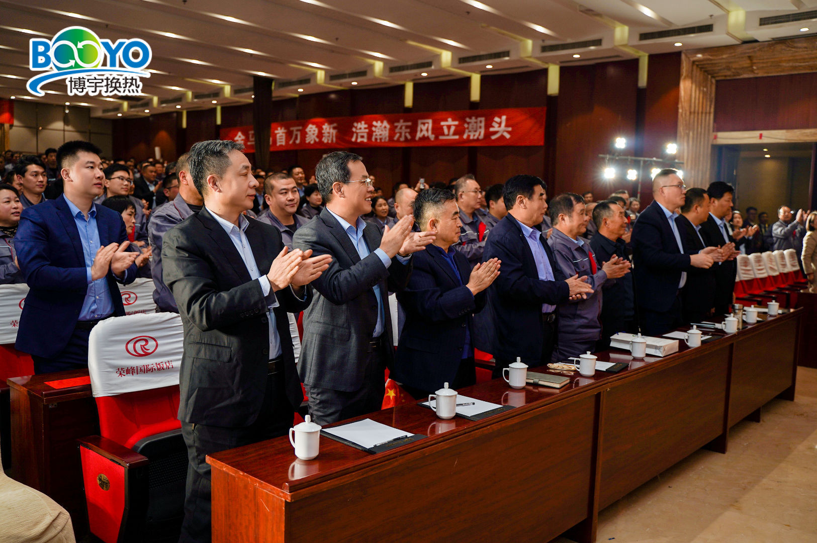马不停蹄,共同富裕。2月14日,山东博宇重工科技集团有限公司(以下简称“山东博宇”)2025年总结表彰大会,在新泰荣峰国际饭店隆重举行。山东博宇全体员工、家属代表、各合作机构代表1300余人参会。