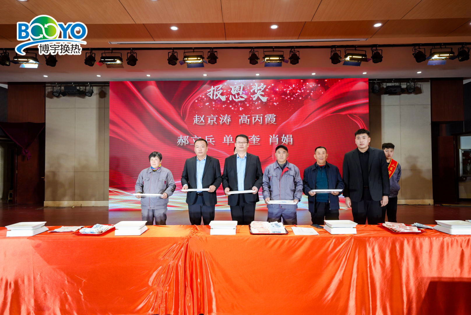 总结表彰大会内容丰富,既有品牌故事,又有全责任、生产管理、技术创新、特殊贡献等精彩纷呈的各类奖项。通过讲述与颁奖,把山东博宇从无到有、从小到大的发展历程一步步呈现在社会面前。大会现场“我和博宇的故事”环节成为一大亮点,员工代表登台分享了自己、家庭、事业与企业命运相连、深度融合、荣辱与共的故事,既有感谢感激感恩感悟,更有双向奔赴与责任担当,向着马不停蹄共同富裕的道路进发。