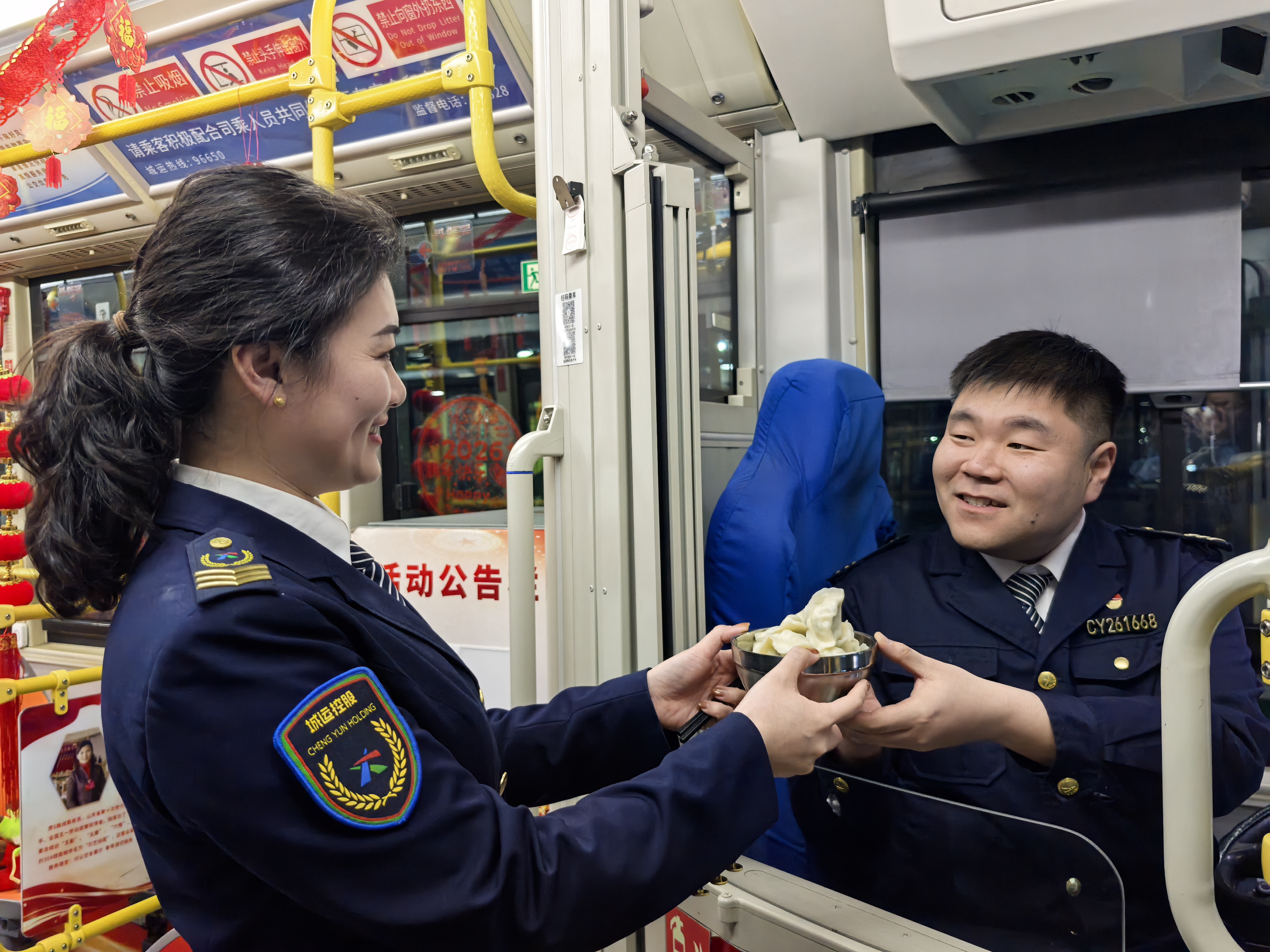 隧道巴士第六分公司党支部副书记王洋洋送上除夕夜饺子
