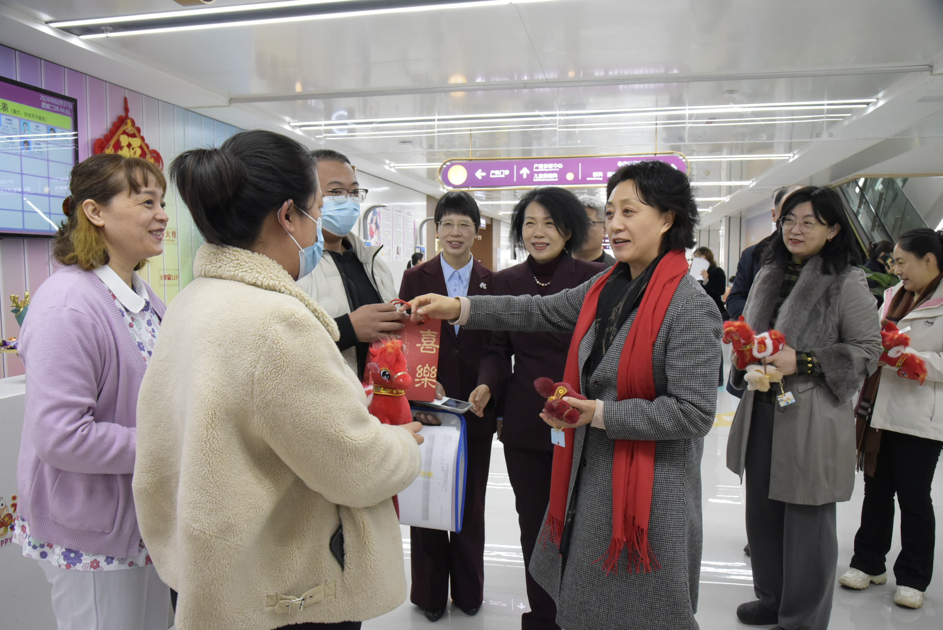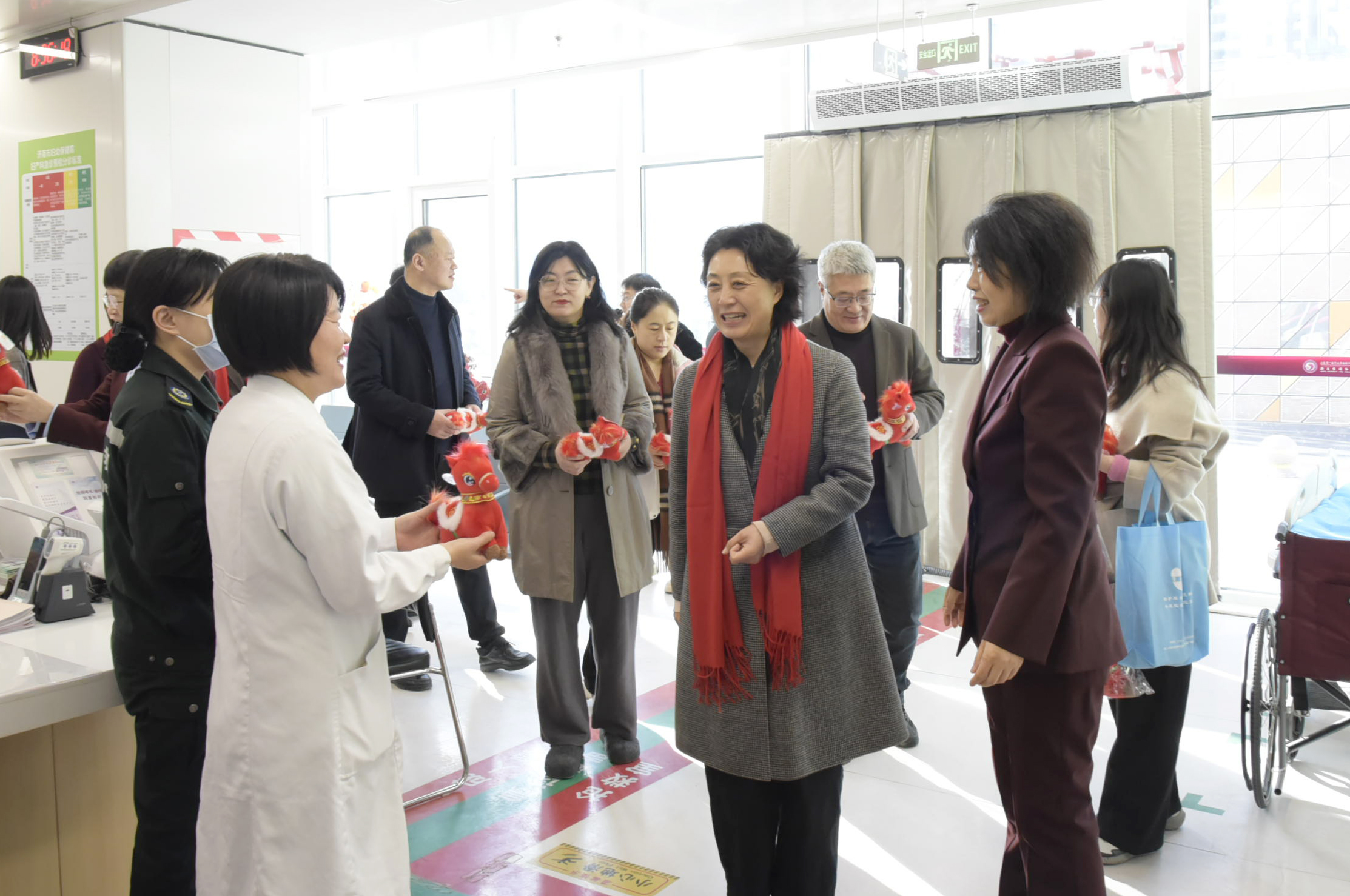 2月17日大年初一,济南市卫健委党组副书记,市计生协党组书记、常务副会长柏爱学;济南市卫健委爱卫办主任郭朝阳、职业健康处处长郭亚囡、离退休干部处处长郑大勇、团委副处长(二级调研员)韩蒙一行到济南市妇幼保健院,督导医疗服务管理情况、安全生产及平安医院建设,并慰问在一线值守岗位的工作人员和就诊患者,为他们送上新春的祝福。医院党委书记聂文英、院长韩炳娟及领导班子成员、相关科室负责人陪同慰问。
