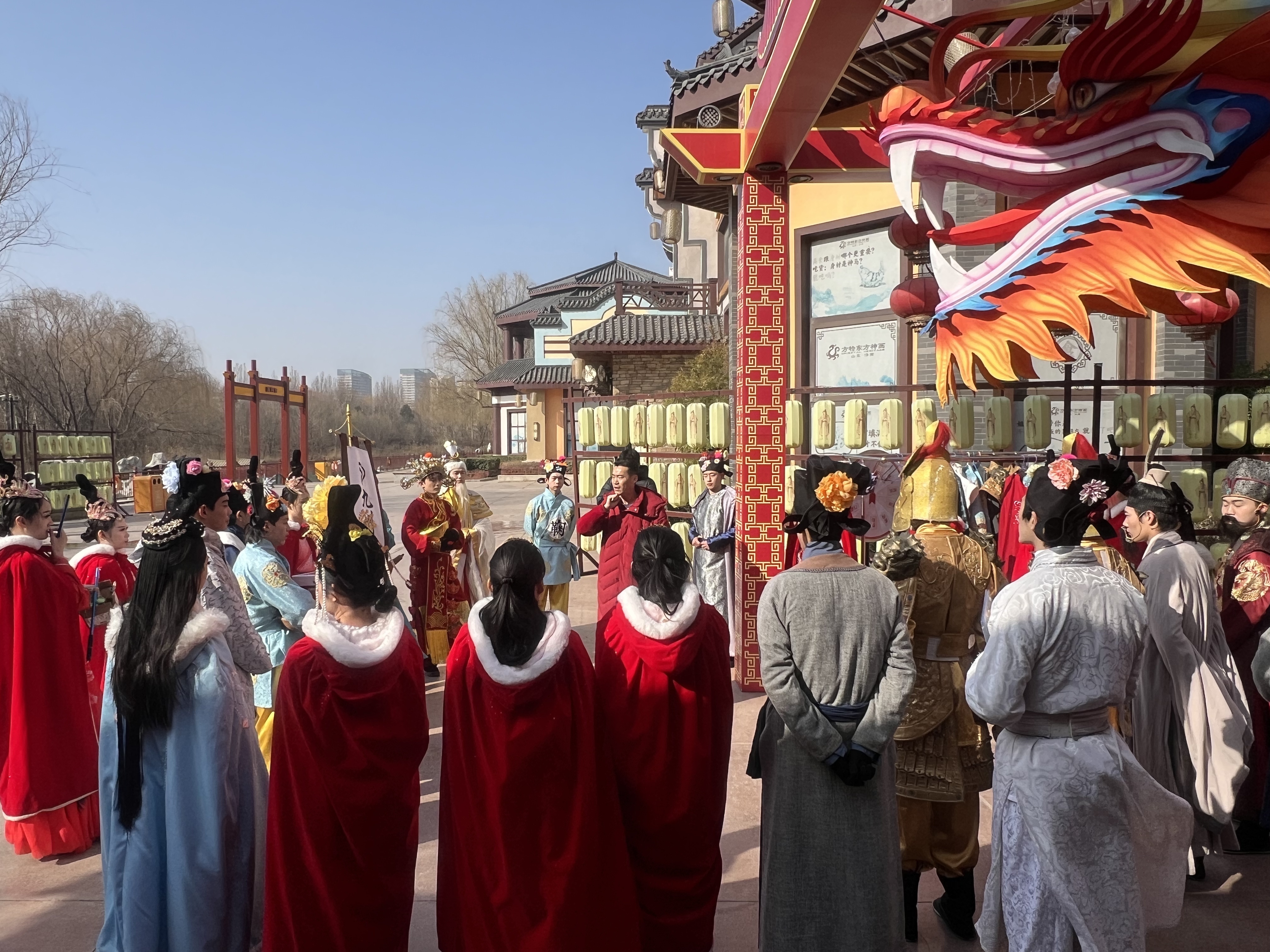 这份有序与精彩,离不开提前数月的精心筹备。每年早在春节前一两个月,关鹏和团队就启动了各项工作:新节目编排、演员排练、服装道具更新、流程细化、安全预案、应急演练等,每一个环节都要反复打磨。“最大的挑战就是时间紧、任务重,要在短时间内拿出高质量的春节演艺,还要应对低温、大风等不确定性天气对户外演出的影响。”关鹏表示,靠着团队的默契配合、提前预案,细化到每一个节目、每一个点位、每一个人,再大的困难都能一起扛过去,只为给游客呈现最好的新春体验。
