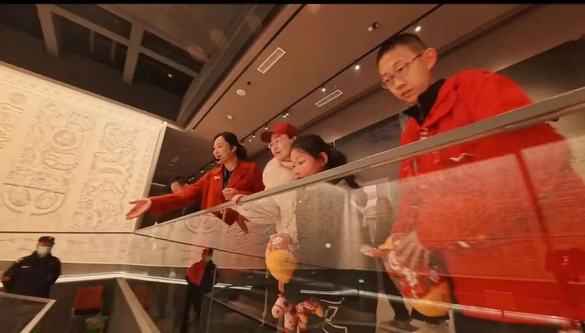 北城馆区暖意融融,前15组最先入馆的家庭收获了新年福字、精美台历等节庆好礼,将历史的温度与新年的喜气一同打包。跟随着馆长的脚步,开启了新年专场讲解,从馆藏文物的历史故事中读懂文化内涵,在沉浸式数字艺术展里,见证文物与科技碰撞出的独特魅力,让传统文脉在数字时代焕发新生。