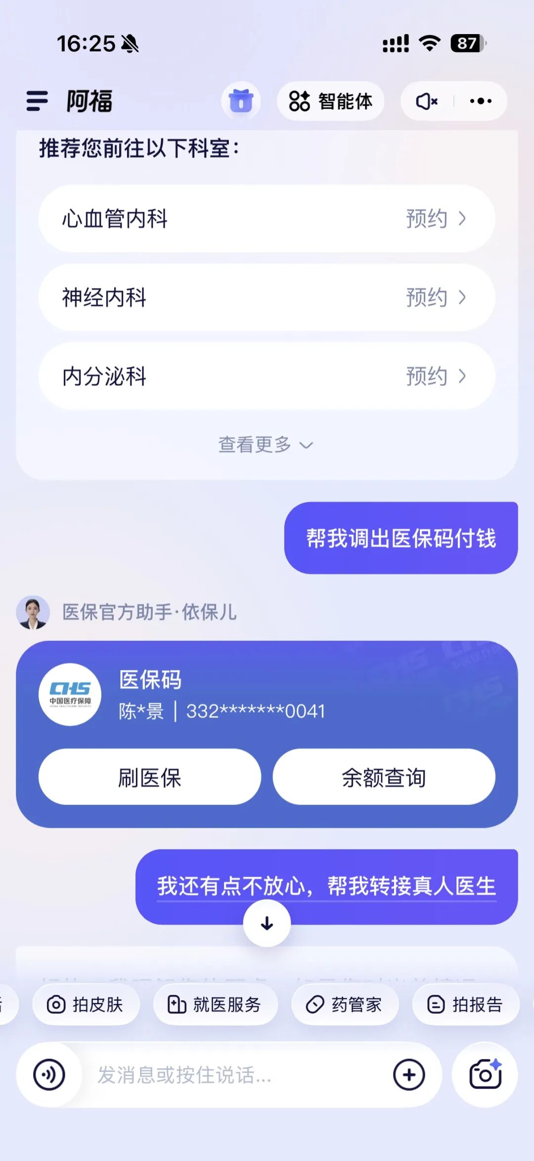 📢帮我调出医保码付钱;