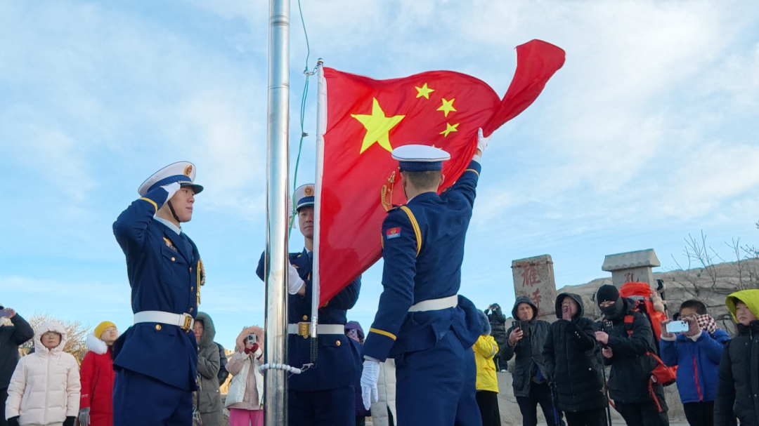 “起来!不愿做奴隶的人们……”国歌声中,太阳终于挣脱云海的束缚,跃然而出……当最后一个音符落下,国旗恰好到达杆顶,在新春第一缕完整阳光下猎猎飘扬。