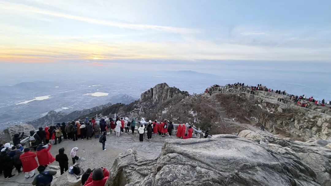 几乎在玉皇顶准备国旗升起的同一时刻,泰山另一处最佳观日点——瞻鲁台,已被人潮填满。