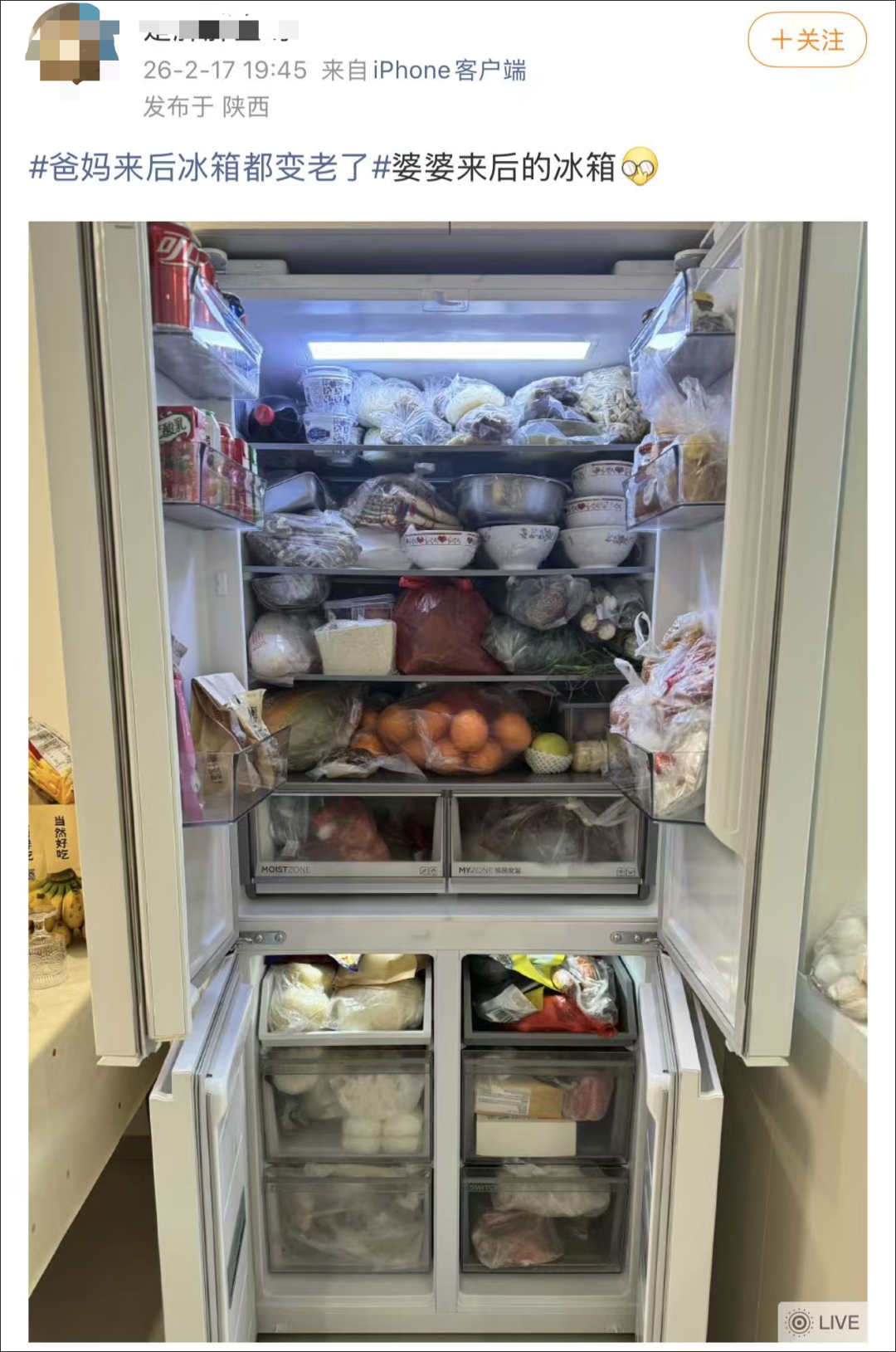 “爸妈来后冰箱都变‘老’了!”网友:原来全国都这样