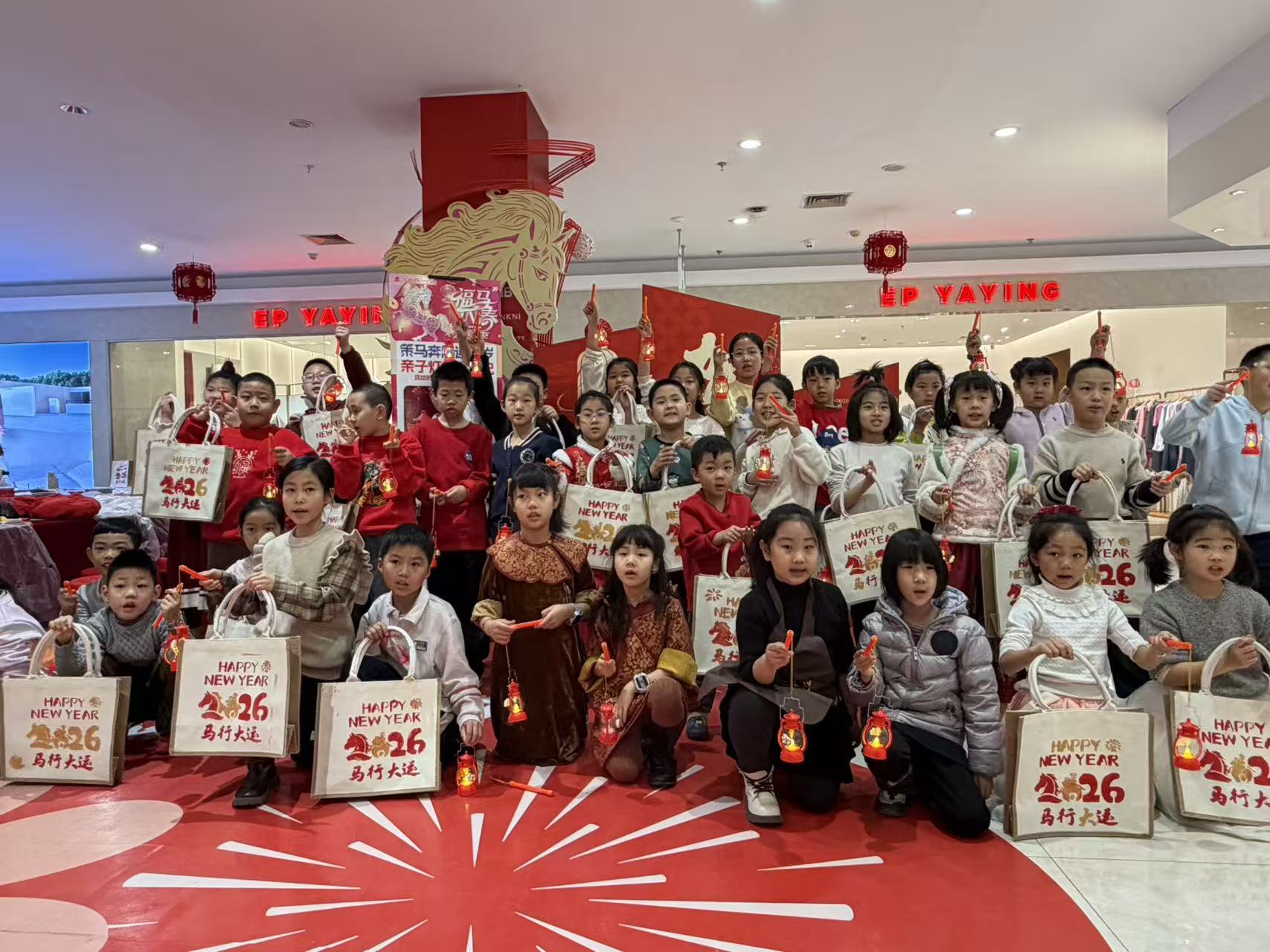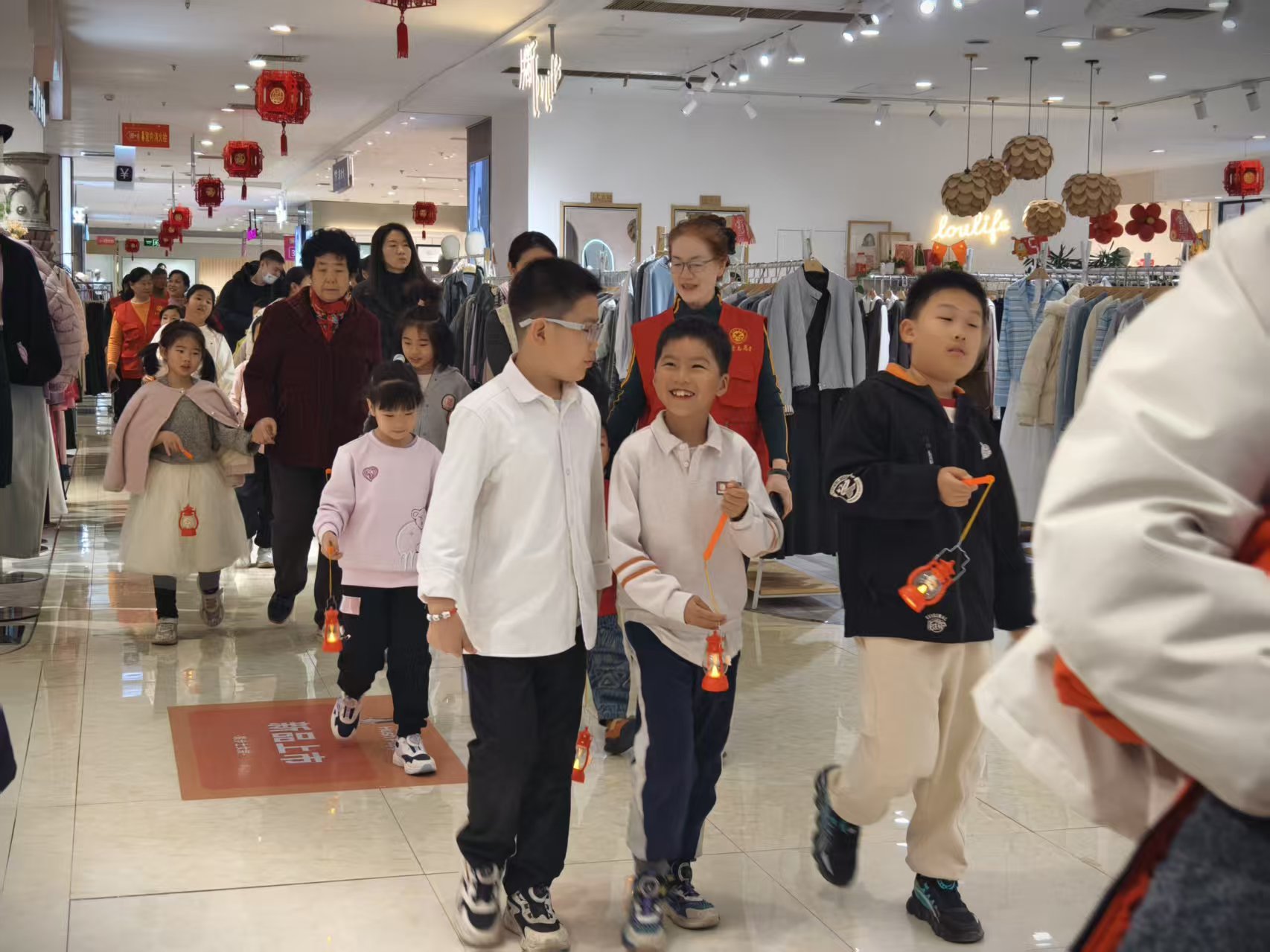 活动伊始,40组亲子家庭手持精致的新春灯笼,在商场内开启了一场充满仪式感的巡游。孩子们身着喜庆的服饰,与家长结伴而行,灯笼的暖光与商场的新春装饰交相辉映,形成一道流动的风景线,引得不少顾客驻足观赏、拍照留念,有效带动了现场氛围与客流热度。