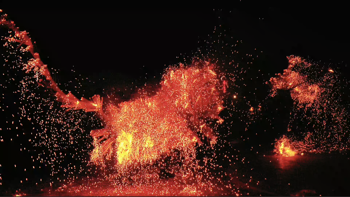 这二十分钟的震撼演出,背后是半个月的艰辛筹备。周传建介绍,单是火虎身上的3600根火捻子,需要一根一根亲手搓制,再小心翼翼地固定在“虎衣“上。