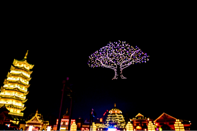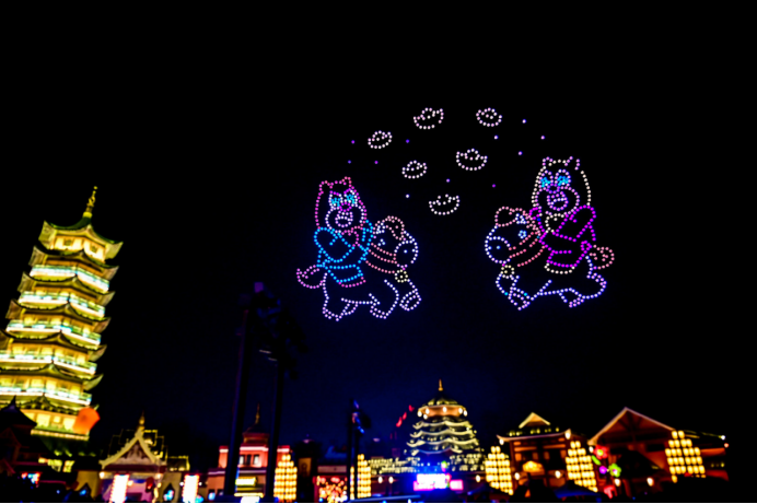 新春期间,更有“神骏巡天”无人机秀璀璨上演,成为本次灯会的惊喜彩蛋。大年初一至初三,两千架无人机以天为幕、以光为笔,在泉城夜空编织出璀璨星河,灵动演绎马年祥瑞意象。传统年味与科技美学的极致交融,为游客献上了一场超震撼的视觉盛宴,带来全新的新春光影体验。